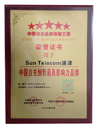 In May 2020, Sun Telecom was awarded as the honorary title of "China's Most Influential Independent Innovation Brand".
