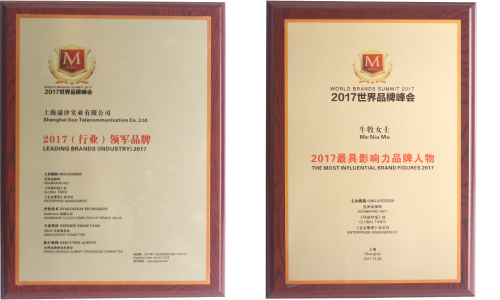 On Nov. 28th 2017, Sun Telecom was awarded as the honorary title of "Leading Brands (Industry) 2017" after the joint review by ABAS Expert Committee, Asiabrand Research Institute and Asiabrand Assessment Center in World Brands Summit 2017 in Shanghai, China. And CEO Caesara Niu won the honorary title of "The Most Influential Brand Figures 2017" at the same time.