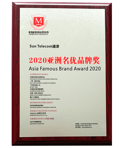 On Sep. 9th 2020, the 15th Asia Brand Ceremony was held at the Hainan Free Trade Port. Sun Telecom was awarded the “Asia Famous Brand Award 2020”.